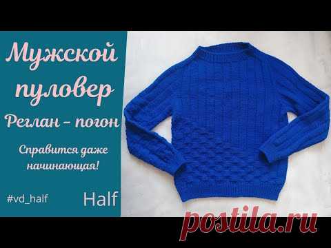 Мужской пуловер Half спицами. Реглан-погон. Справится даже начинающая!