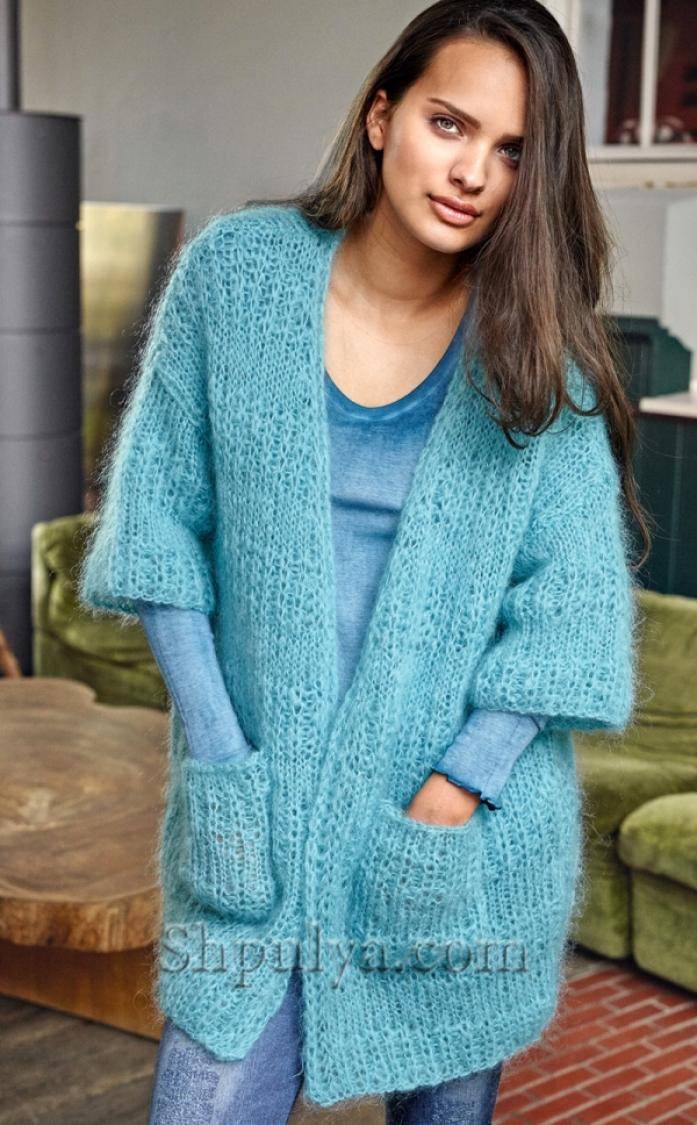 Жакет из мохера спицами с описанием Схемы вязания, модели и узоры спицами. Вязание спицами со схемами и описанием. Вязание спицами для начинающих и профессионалов. Каждый день новая схема и мастер классы.