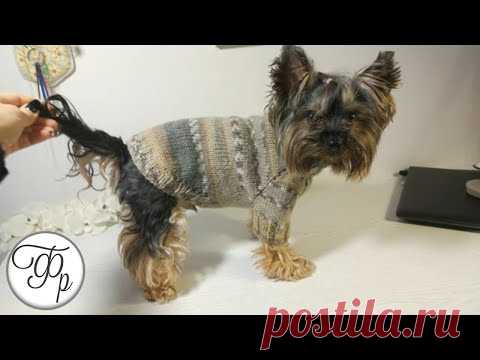 Свитер для собаки спицами. Реглан сверху, расчеты для любого размера.