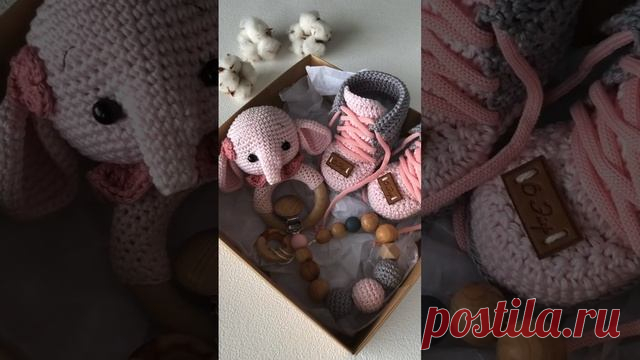 Вязание крючком для детей от 0 до 3 лет - Схемы от Винера Эйер - Слоник и Ботиночки Эффектный вязанный набор для новорожденного: Слоник и Ботиночки. Описания вязания - МК - Винеры Эйер.