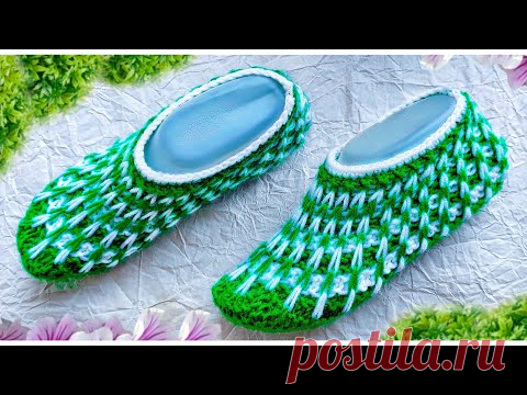 👌ЯРКИЕ И НАРЯДНЫЕ ТАПОЧКИ - СЛЕДКИ СПИЦАМИ💥💥💥 Подробный мастер класс ДЛЯ НАЧИНАЮЩИХ