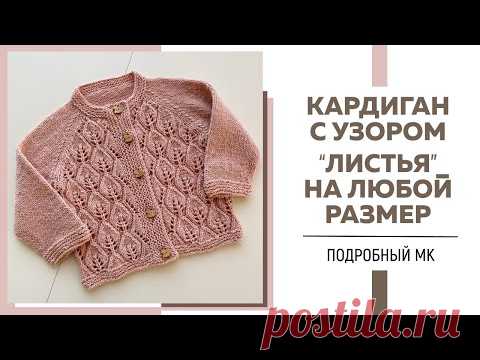 КАРДИГАН СПИЦАМИ С УЗОРОМ «ЛИСТЬЯ» НА ЛЮБОЙ РАЗМЕР || Подробный мастер-класс ||