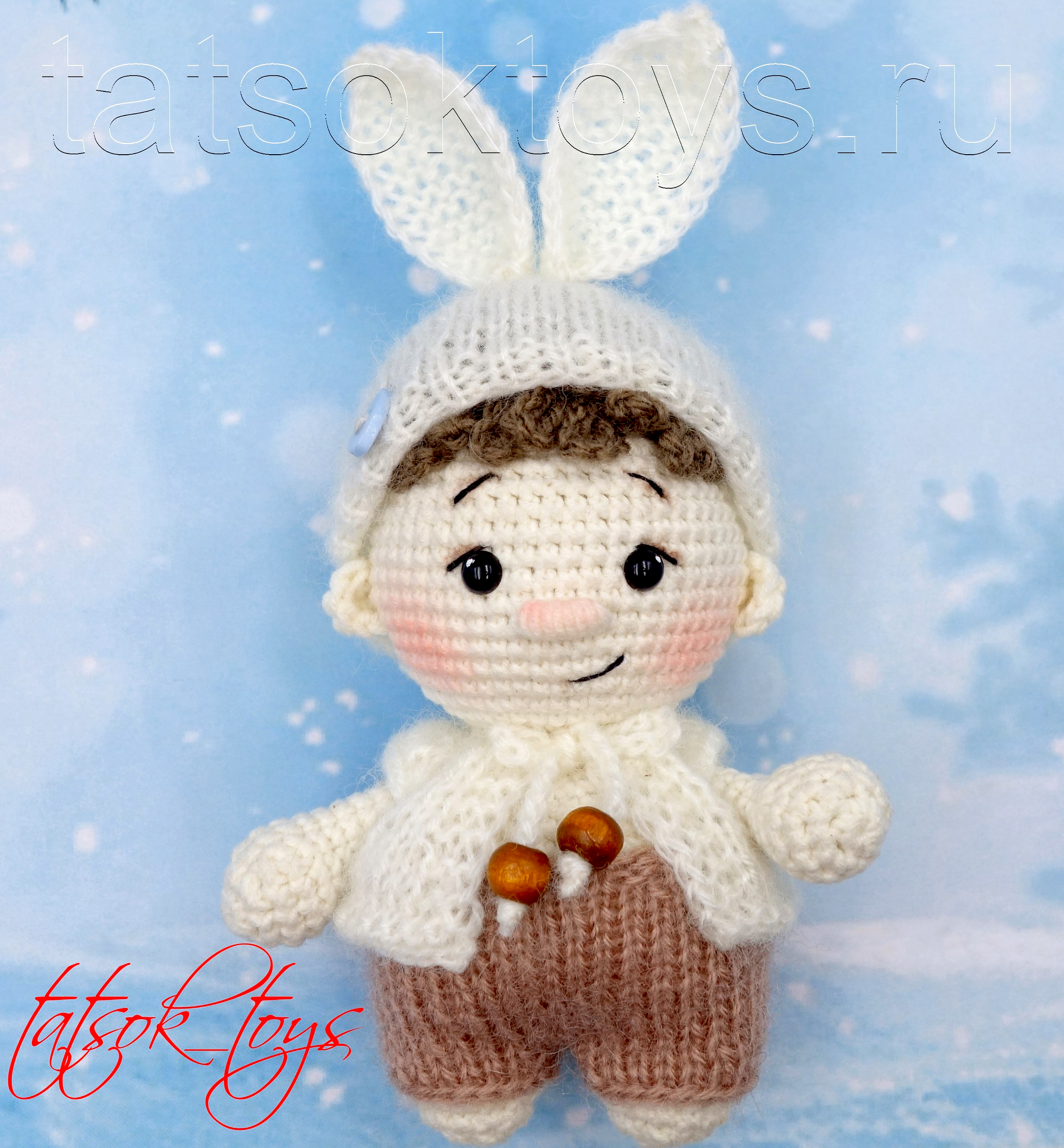 PDF Мальчик-зайчик крючком. FREE crochet pattern; Аmigurumi doll patterns. Амигуруми схемы и описания на русском. Вязаные игрушки и поделки своими руками #amimore - маленькая кукла в шапочке с заячьими ушками, пупс, куколка, пупсик, мальчик.