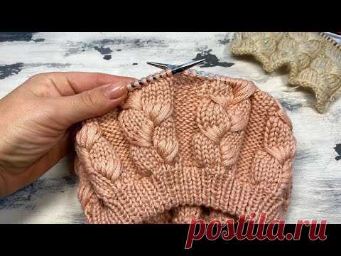 Шикарный узор с вытянутыми петлями для вязания беретов, шапок. Круговое вязание.