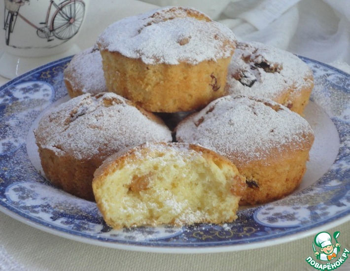 - Творог протереть через сито или пробить погружным блендером. Включить духовку на 200 С. Отделить желтки от белков. Сливочное масло комнатной температуры с сахаром и ванильным сахаром взбить в пышную массу и, продолжая взбивать, добавить по одному желтки. Соединить творог со сливочно-яичной массой. Перемешать. Муку соединить с крахмалом и разрыхлителем и просеять. Добавить вместе с промытым и высушенным к творожной массе и перемешать. Белки с солью взбить до устойчивых пиков. Ввести белки в тесто движениями сверху вниз. Выложить тесто в смазанные маслом формы на ½ высоты и выпекать 20-25 минут. Правильно приготовленный кекс имеет трещинки на поверхности. Остывшие кексы посыпать сахарной пудрой.