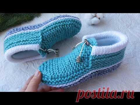 💥СТИЛЬНЫЕ БЕСШОВНЫЕ следки - мокасины на двух спицах. Подробный МК.