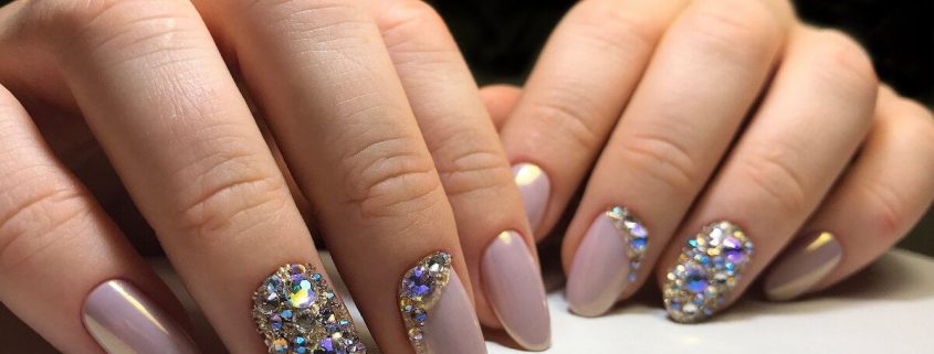 Маникюр со стразами на миндальную форму: 100 фото стильных новинок