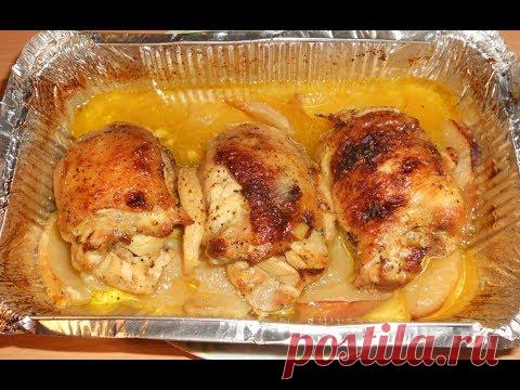 Куриные бедрышки с яблоками в духовке . Очень вкусно!
