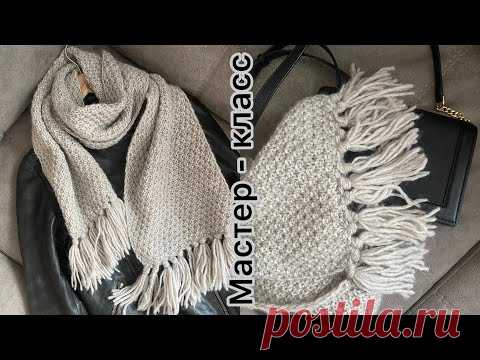 Экспресс мастер - класс по вязанию большого объемного шарфа с кисточками.