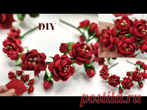 Посмотрите как Быстро и Красиво можно Сделать Ободок с Розами из Глиттерного Фоамирана