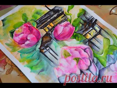 КИТАЙ. Абстрактная интерьерная картина акварелью.
