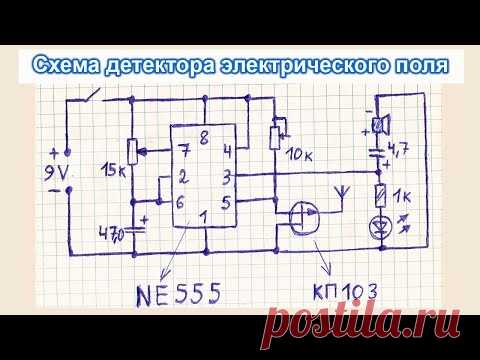 Схема простого, хорошего искателя скрытой проводки, детектора электрического поля на таймере 555