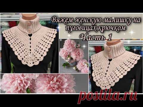 🌹Вяжем удобную, теплую и красивую женскую манишку на пуговицах крючком. Подробный МК. Часть 1.