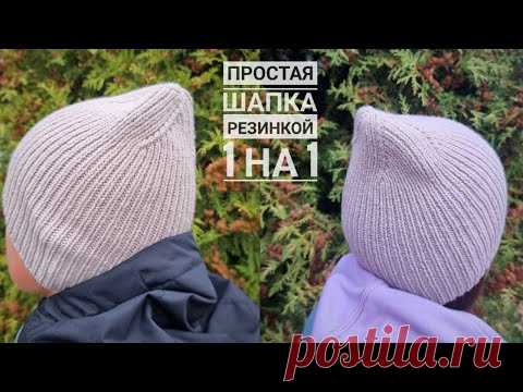 Простая шапка резинкой 1 на 1 спицами! Итальянский набор и спиральная макушка