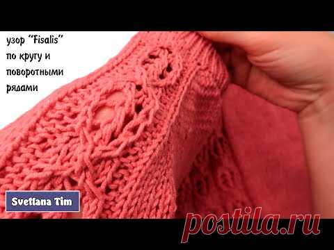 УЗОРЫ СПИЦАМИ ПО КРУГУ. Узор спицами "Физалис" (для кругового вязания и поворотными рядами)