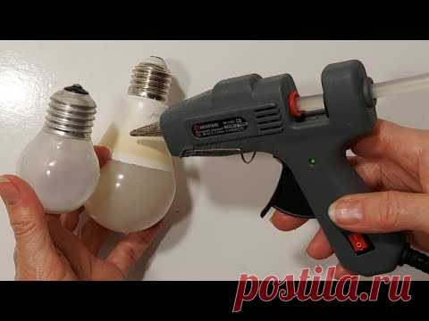 Заливаю ЛАМПОЧКИ ГОРЯЧИМ КЛЕЕМ!! У вас есть СГОРЕВШИЕ ЛАМПОЧКИ? СРОЧНО СМОТРИТЕ- КРАСОТИЩА! DIY-идеи