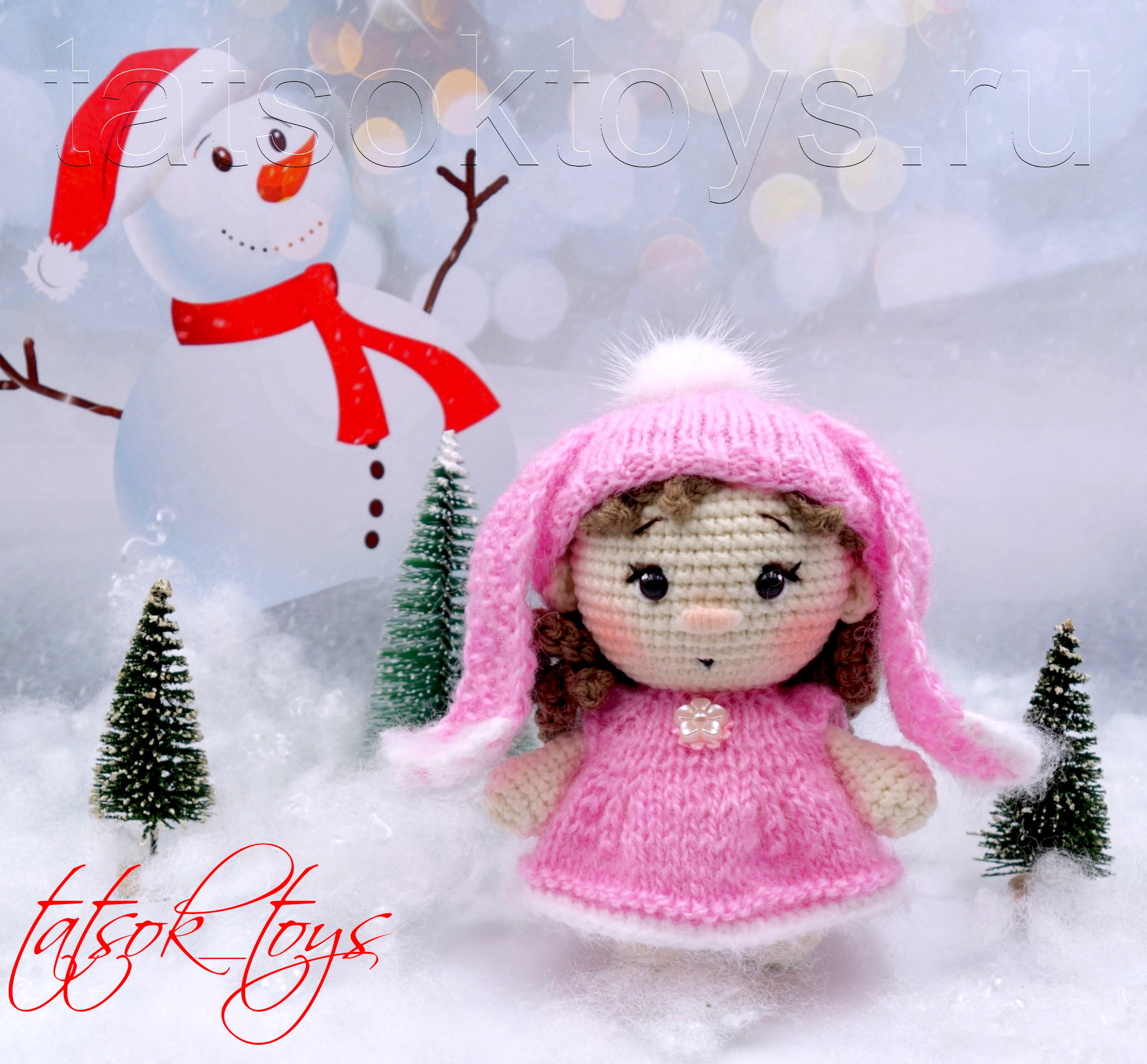 PDF Девочка-зайка крючком. FREE crochet pattern; Аmigurumi doll patterns. Амигуруми схемы и описания на русском. Вязаные игрушки и поделки своими руками #amimore - маленькая кукла в шапочке с заячьими ушками, пупс, куколка, пупсик, девочка.