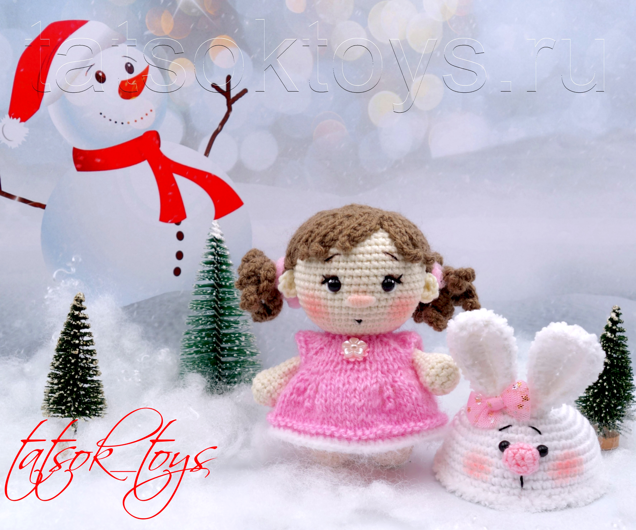 PDF Девочка-зайка крючком. FREE crochet pattern; Аmigurumi doll patterns. Амигуруми схемы и описания на русском. Вязаные игрушки и поделки своими руками #amimore - маленькая кукла в шапочке с заячьими ушками, пупс, куколка, пупсик, девочка.