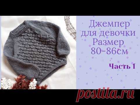 Детский джемпер для девочки спицами регланом снизу /узор Саженцы / размер 12-18 мес/ Часть 1