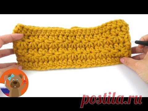 Повязка на голову с узором Звездочка | Вязание крючком для начинающих | DIY