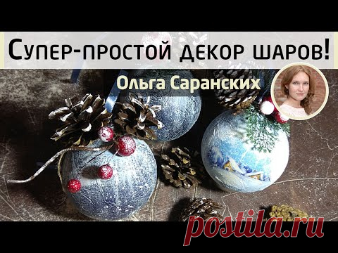 🎄Простой, но очень красивый декор новогодних шариков. МК Ольги Саранских. Декупаж шариков на ёлочку
