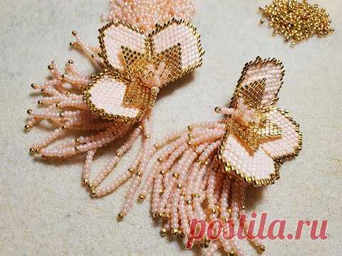 Aretes de pétalos con tiras en delicas miyuki y mostacillas 11/0