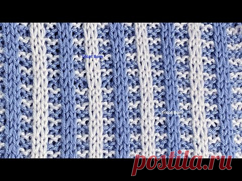 Двухцветный узор из вертикальных линий. Вязание спицами.