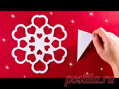 Как сделать снежинку с сердцем из бумаги на Новый год [за 5 минут]