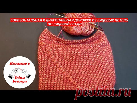 Горизонтальная и диагональная дорожка из лицевых петель на лицевой глади.