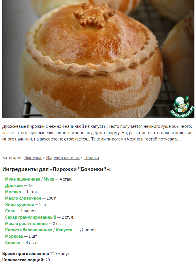 Пирожки "Бочонки" – кулинарный рецепт