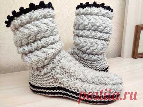 ШИКАРНЫЕ САПОЖКИ-НОСОЧКИ С КОСАМИ ДОМАШНИЕ СПИЦАМИ, Вяжем вместе.