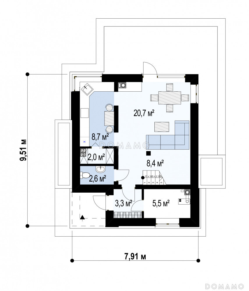 Проект дома с 3 спальнями на втором этаже и кладовкой на кухне, площадь 115 кв. м | DOMAMO - проекты домов | Дзен