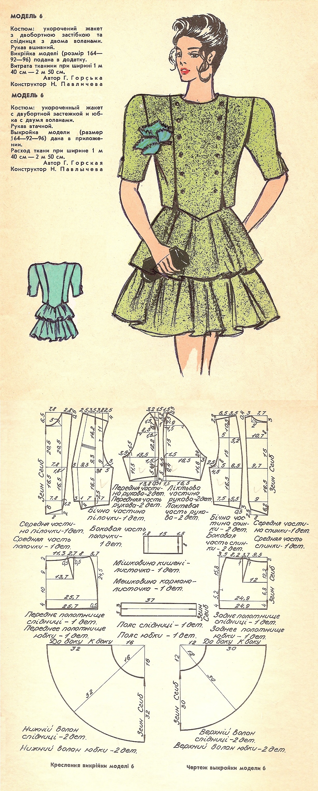 Костюм: укороченный жакет с двубортной застежкой и юбка с двумя воланами