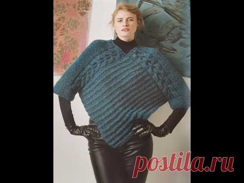 Красивое, тёплое и простое пончо спицами из альпаки и церо