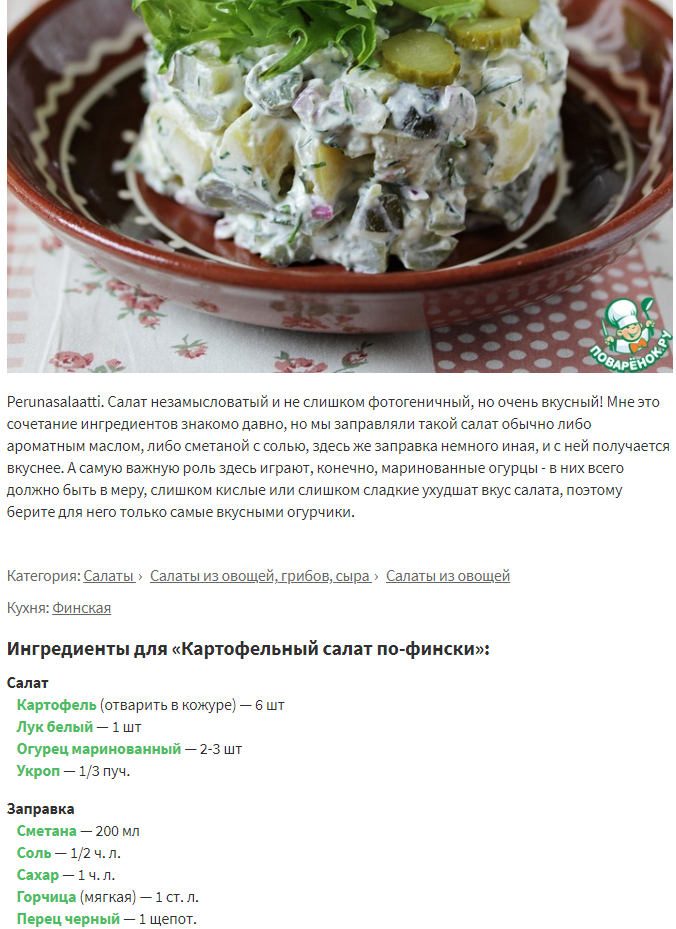 Картофельный салат по-фински – кулинарный рецепт Подробнее