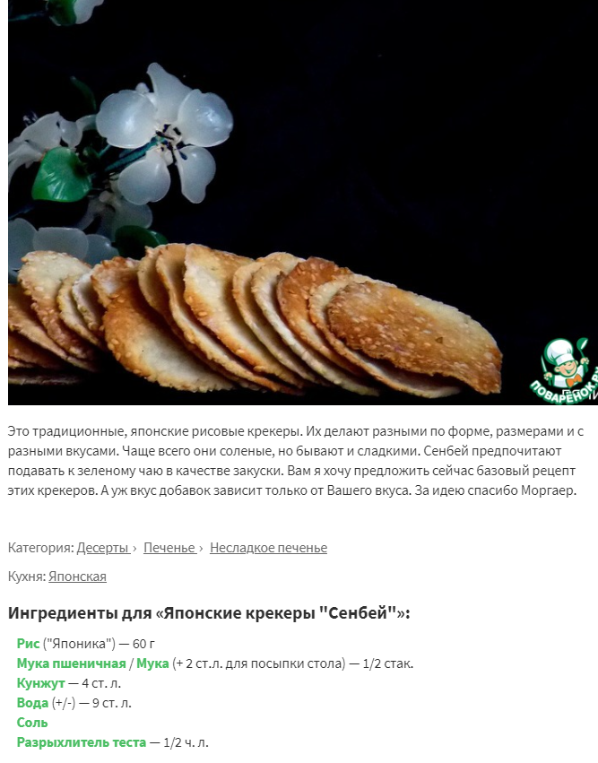 Японские крекеры "Сенбей" – кулинарный рецепт Подробнее