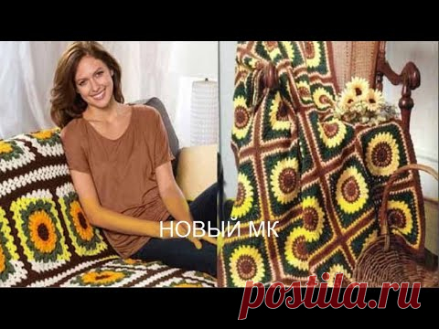 КАК СВЯЗАТЬ МОТИВ С ПОДСОЛНУХОМ КРЮЧКОМ. Новый МК (улучшенный) по вязанию мотива с подсолнухом для пледа крючком. Расход пряжи на плед как на фото заставки (акрил, 100 гр/370 м): 6 мотков коричневой, 4 - зеленой, 3- желтой, 2 - светло-желтой и еще 3 мотка цвета harvust, вот с последним не очень понятен цвет. Всего выходит 1800 г