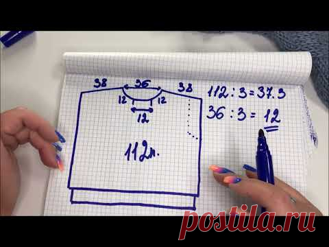 РАСЧЁТЫ для круглого ВЫРЕЗА ГОРЛОВИНЫ и ПЛЕЧЕВЫХ СКОСОВ. Закрываем петли БЕЗ СТУПЕНЕК с обеих сторон