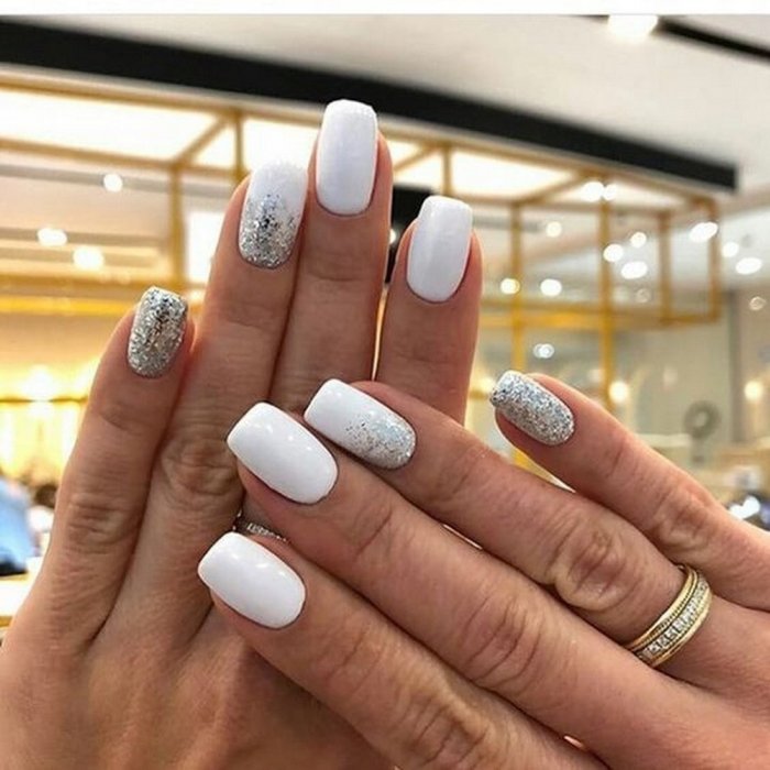 Комбинированный маникюр с белым гель лаком на Новый год (69 фото)