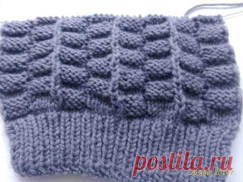 Узор шахматка спицами. Узор для шапки, шарфа, пледа.