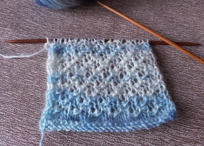 Узор от "Верены" для пуловера. Раппорт 4 петли и 4 ряда В журнале "Верена подиум" увидела пуловер с ажурной кокеткой. Захотелось повторить! Связала образец из секционно окрашенной пряжи, результат вы увидите в ролике.