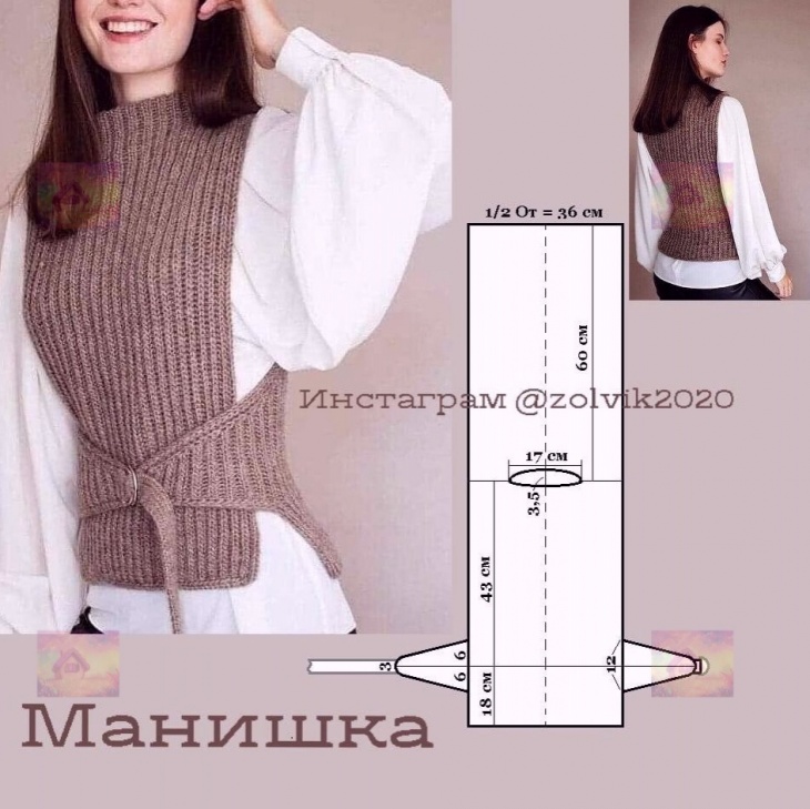 Выкройка полужилета. Выкройка трикотажного жилета, из журнала «Домашний очаг». Можно не только связать, но и сшить из плотного трикотажа!