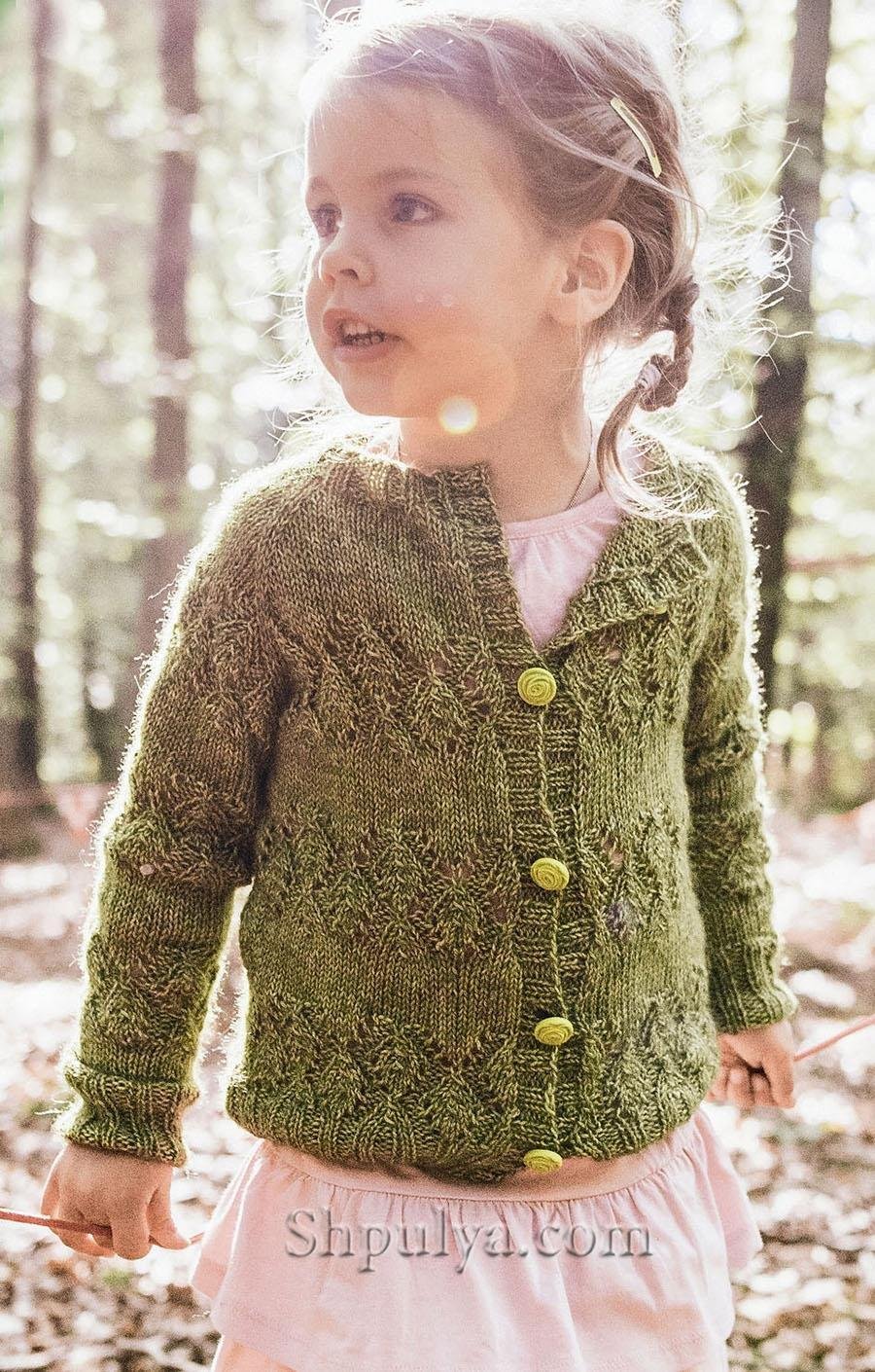 Зеленый жакет с ажурными полосами для девочки Вяжем жакет с интересном узором для ребенка