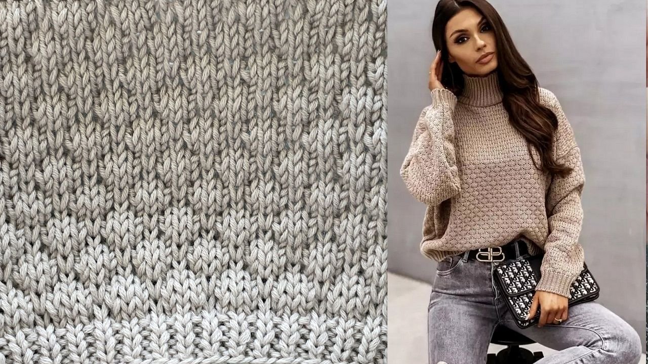 Простой стильный узор для базового свитера Простой стильный узор спицами для базового свитера. В раппорте 4 петли и 8 рядов. Описание вязания поворотными рядами и по кругу. Вы можете найти меня на этих интернет ресурсах: Яндекс Дзен канал:...