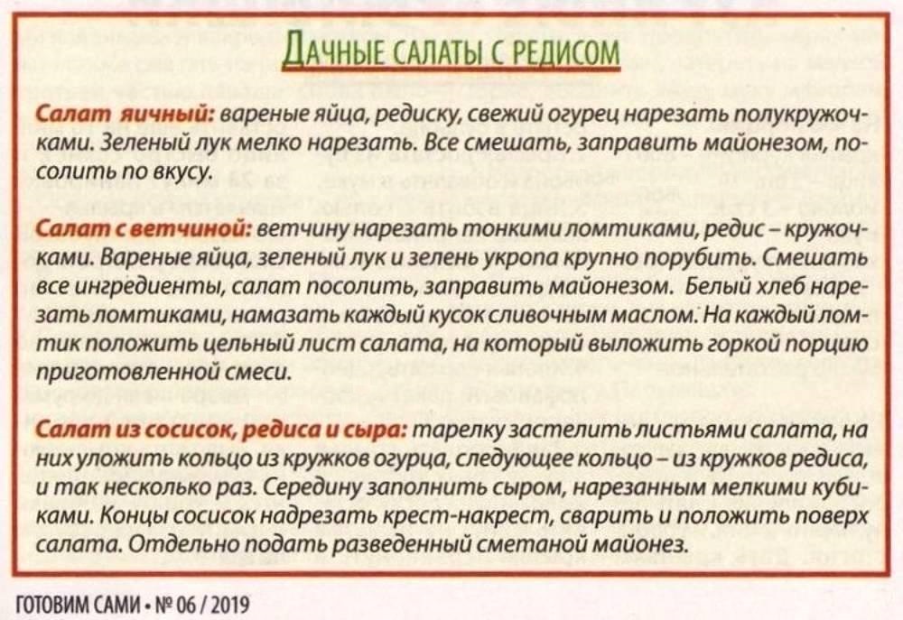 Дачные салаты с редисом