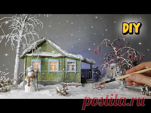 Деревенский домик зимой / Поделка в садик школу / DIY