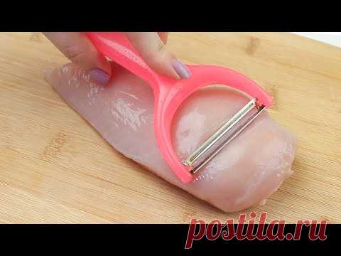 Трюк с овощечисткой! Отличный рецепт с куриными грудками без духовки ASMR