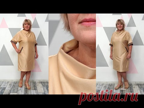 Модное платье с цельнокроеным рукавом и оригинальной горловиной. Платье простого кроя