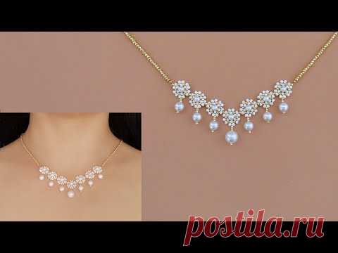 Ожерелье из бисера “Принцесса цветов” с белым жемчугом и мелким бисером. Как сделать украшения из бисера.