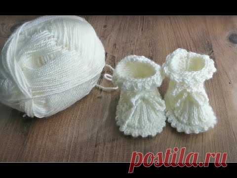 Пинетки для новорождённых от 0 до 3 месяцев спицами. Для начинающих